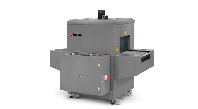 Forni ad aria calda marchio ULMA modello TR con tettoia fissa, disegnati affinche il film aderisca ai prodotti in uscita delle macchine confezionatrici tipo side-seal, fardellatrici, flow pack, overlap o di altro tipo, ottenendo il risultato finale desiderato.