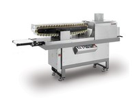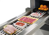 Macchina automatica per il confezionamento con film estensibile di prodotti in vassoi preformati. Livello di prestazioni elevato, appositamente progettata per grandi superfici e centrali di confezionamento (carne, pollame, pesce e prodotti ortofrutticoli).
