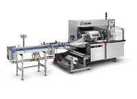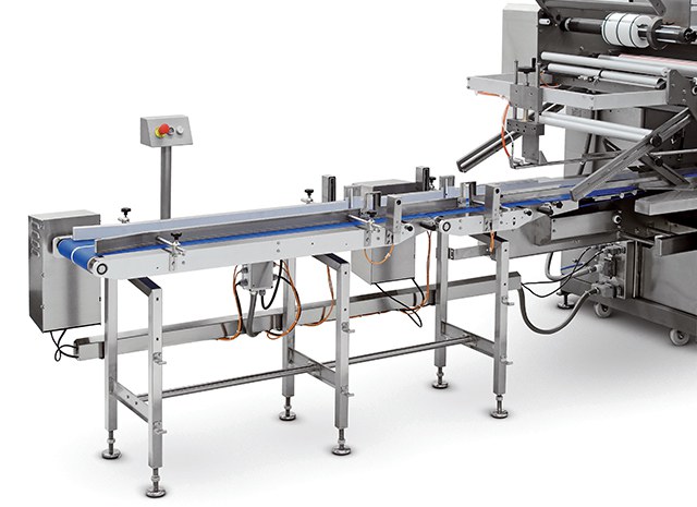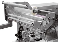Macchina confezionatrice Flow Pack orizzontale che realizza tre saldature totalmente ermetiche ottenendo una confezione tipo a cuscino per il confezionamento in atmsofera modificata di alimenti freschi. Alto livello di prestazioni.