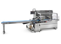 Macchina confezionatrice Flow Pack orizzontale che realizza tre saldature totalmente ermetiche ottenendo una confezione tipo a cuscino per il confezionamento in atmosfera modificata di alimenti freschi. Livello di prestazioni medio alte.