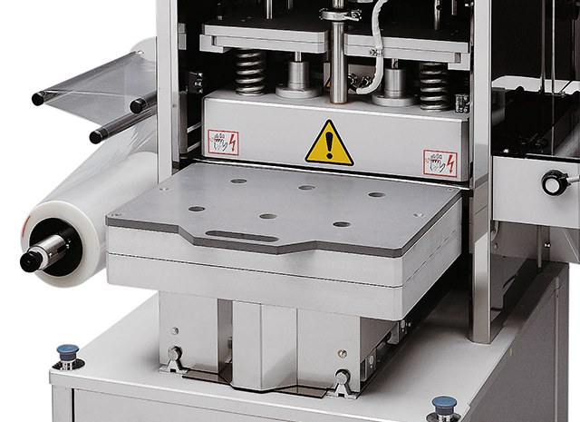 Macchina termosaldatrice semiautomatica preindustriale per tutti i tipi di vassoi preformati. Possibilità di confezionamento in atmosfera modificata e confezionamento sottovuoto. Sistema di trasporto manuale di vassoi con un livello di prestazioni minimo fondamentale.