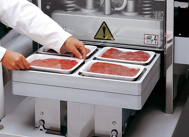 Macchina termosaldatrice per il confezionamento di prodotti alimentari in atmosfera modificata. Il modello SMART si adatta ad un' ampia gamma di film e vaschette di materiali semplici, complessi ed espansi in base alle richieste di ciascun prodotto.