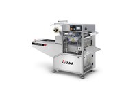 Macchina termosaldatrice automatica molto compatta per tutti i tipi di vassoi preformati regolari. Possibilità di confezionamento in atmosfera modificata e confezionamento sottovuoto. Sistema di trasporto vassoi con bacchette per produzioni medie.