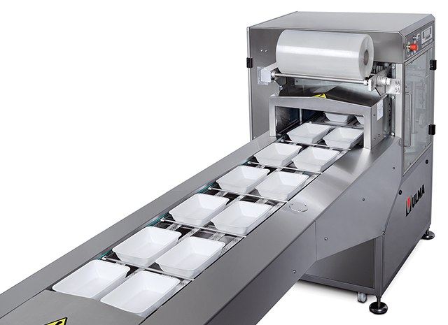 Basata sul concetto di trasporto di vaschette per spinta, è una macchina pensata per clienti che necessitano dare il primo passo al confezionamento automatico con un aumento della produttività.