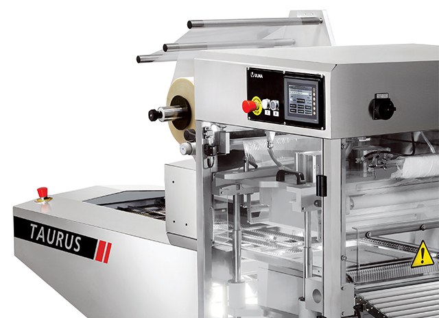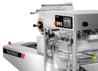 Nuovo disegno di macchina termosaldatirce TAURUS 300 per il confezionamento di prodotti collocati nelle vaschette.