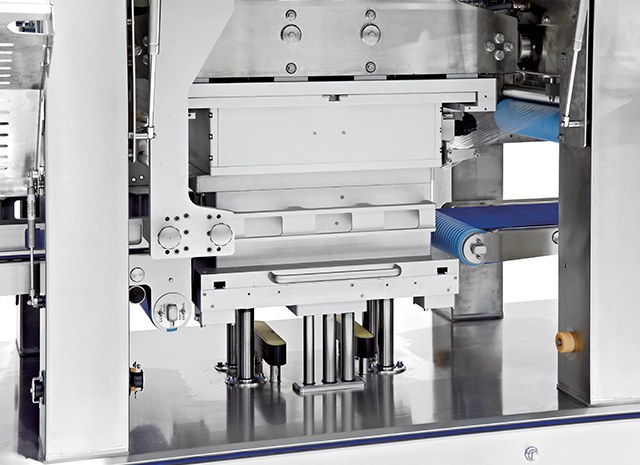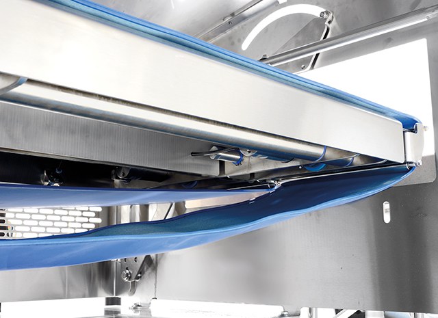 - Entrata vaschette e posizionamento: nastro azionato con mototamburo.