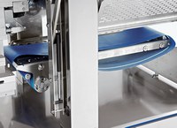 - Entrata vaschette e posizionamento: nastro azionato da mototamburo.