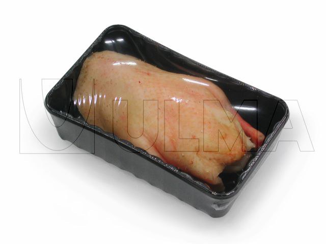 Confezionamento d'anatra in vassoio con flow pack in atmosfera modificata