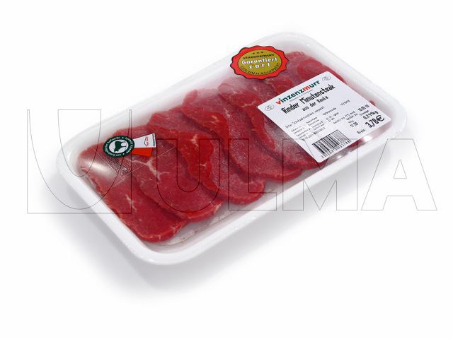 Confezionamento di bistecche di carne in vaschette termosaldate in atmosfera protettiva (MAP)