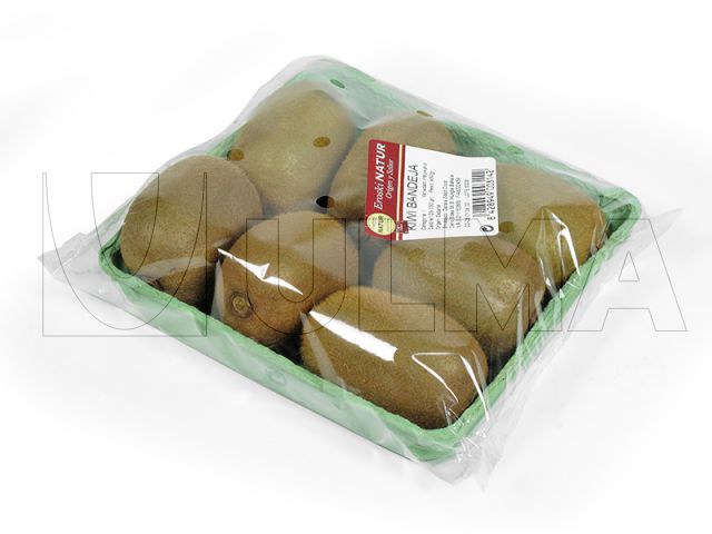 Confezionamento di kiwi in vaschetta di cartone in flow pack (hffs) 1957_1.jpg FR 200 Macchina confezionatrice Flow Pack orizzontale a tre saldature che realizza una confezione tipo a cuscino con un livello di prestazioni medio-alto.