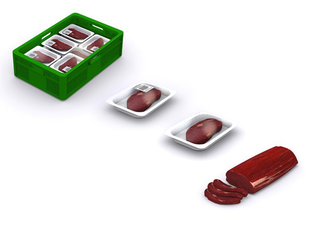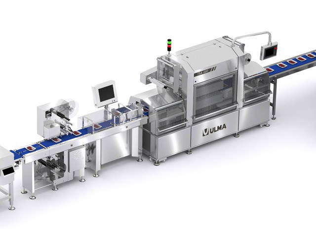 La termosaldatrice igienizzabile automatica TSA di ULMA salda le vaschette di filetti di carne in atmosfera controllata per aumentare la sua vita utile. Dispone di un disimpilatore automatico di vaschette che estraggono le vaschette dal nastro d' alimentazione