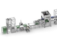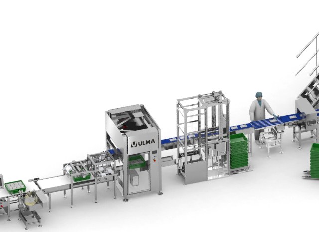 La struttura dispone di un disimpilatore automatico di casse vuote per alimentare la cellula robotizzata di inscatolamento.