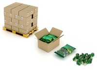 Successivamente mediante un sistema di inscatolamento tipo drop-down, le buste di broccoli congelati vengono impilate dentro la cassa di cartone approfittando al massimo del volume disponibile.