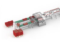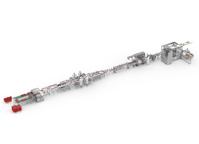 Linee complete per il confezionamento di vaschette di fragole in confezionatrice flow pack.