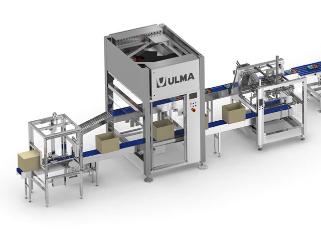 La formatrice forma le scatole affinchè in un secondo momento la cella inscatolamento robotizzata sistemi le confezioni,che provengono dalla confezionatrice, direttamente nella scatola.