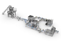 Linea di confezionamento per dolci e prodotti di pasticceria che include confezionamento e inscatolamento automatico in astuccio.